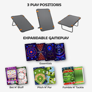 - Essentials includes the classics — Dartz, Cornhole, Arcade Roll, and Pong — ideal for backyard games, yard games, lawn games, indoor game nights, and everyday outdoor fun.