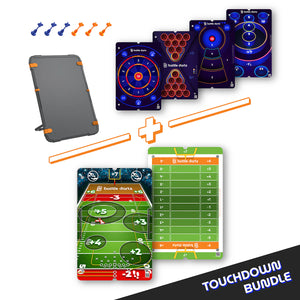 Touchdown, Jackpot et Multi-Sport incluent tous les quatre jeux Essentials — donc quel que soit le pack que vous choisissez, vous êtes paré pour le plaisir dans le jardin, les jeux de pelouse, les compétitions de pique-niques et les jeux d'intérieur compétitifs.