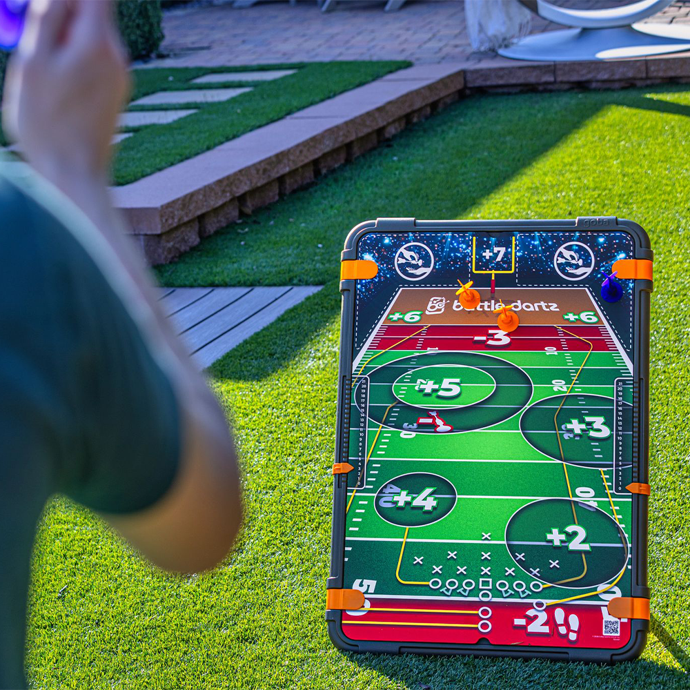 Avec ses pieds en acier poudré escamotables et une poignée de transport intégrée, le battle dartz est prêt pour les hayons, les tournois de hayon, les fêtes de jardin, les jeux de plein air, les pique-niques et les soirées de jeux intérieurs. Installation rapide. Transport facile. Prêt pour le plaisir en plein air où que vous alliez.