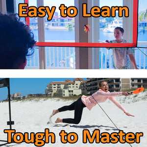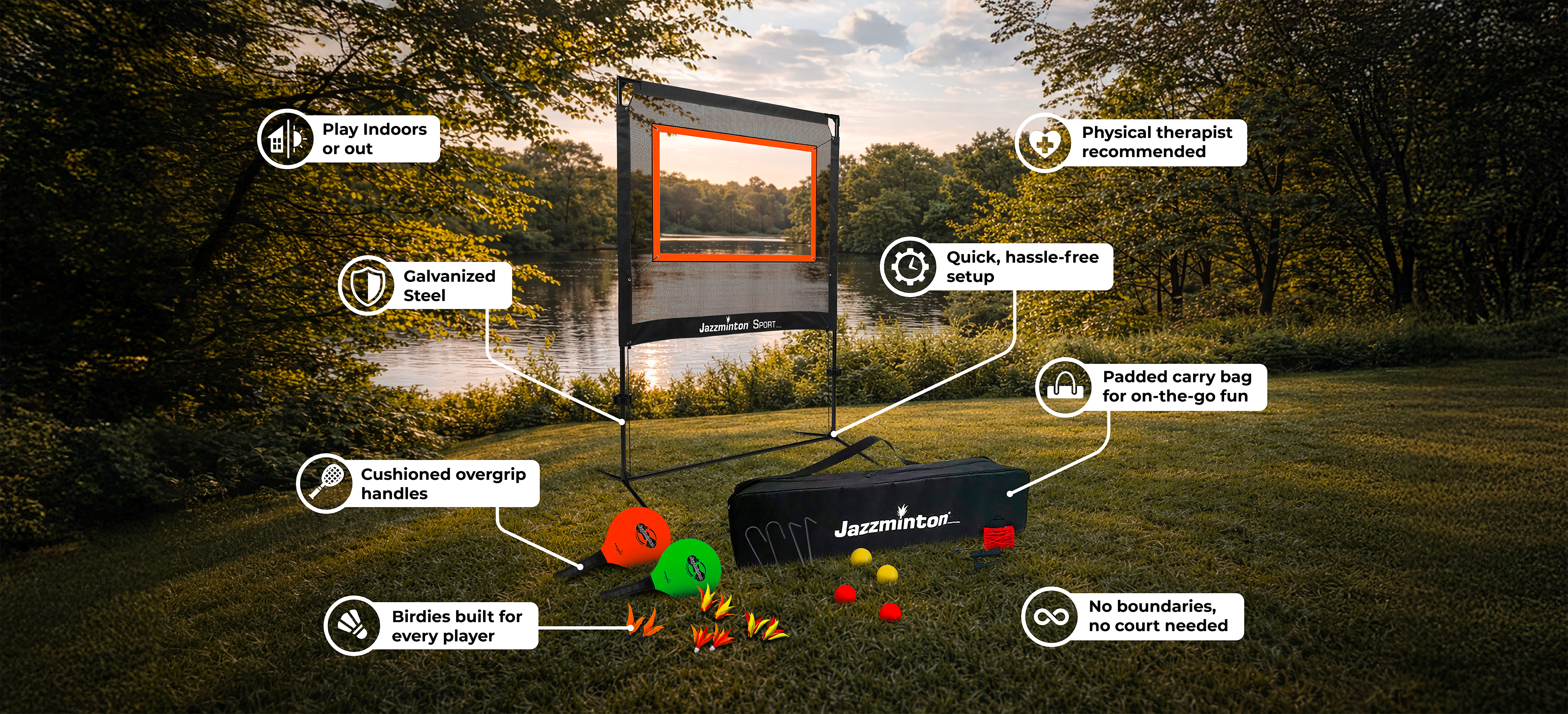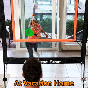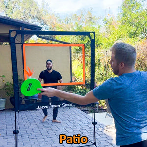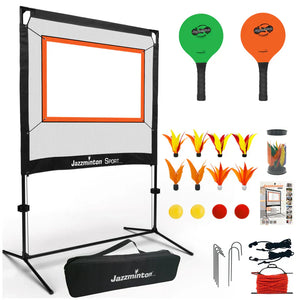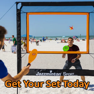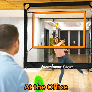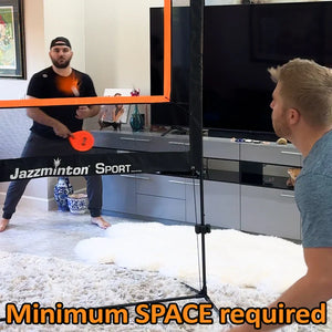Jazzminton Sport breaks the mold, play indoors or out, no court required. Bring the action to you, set up in minutes and let the rallies fly!
